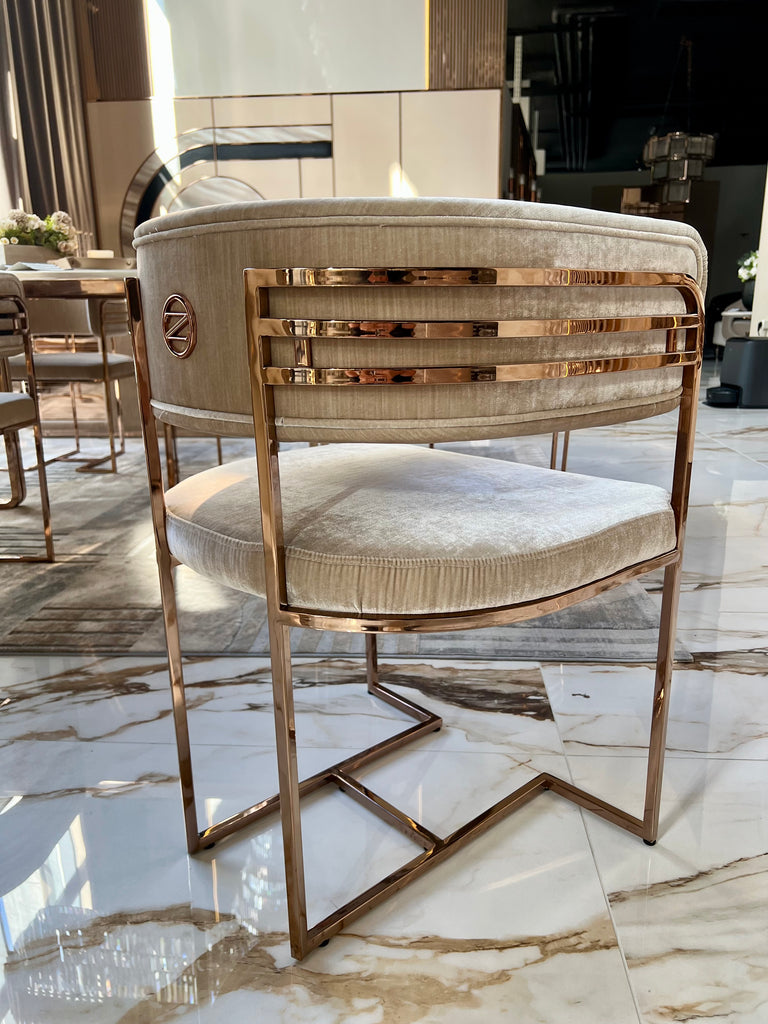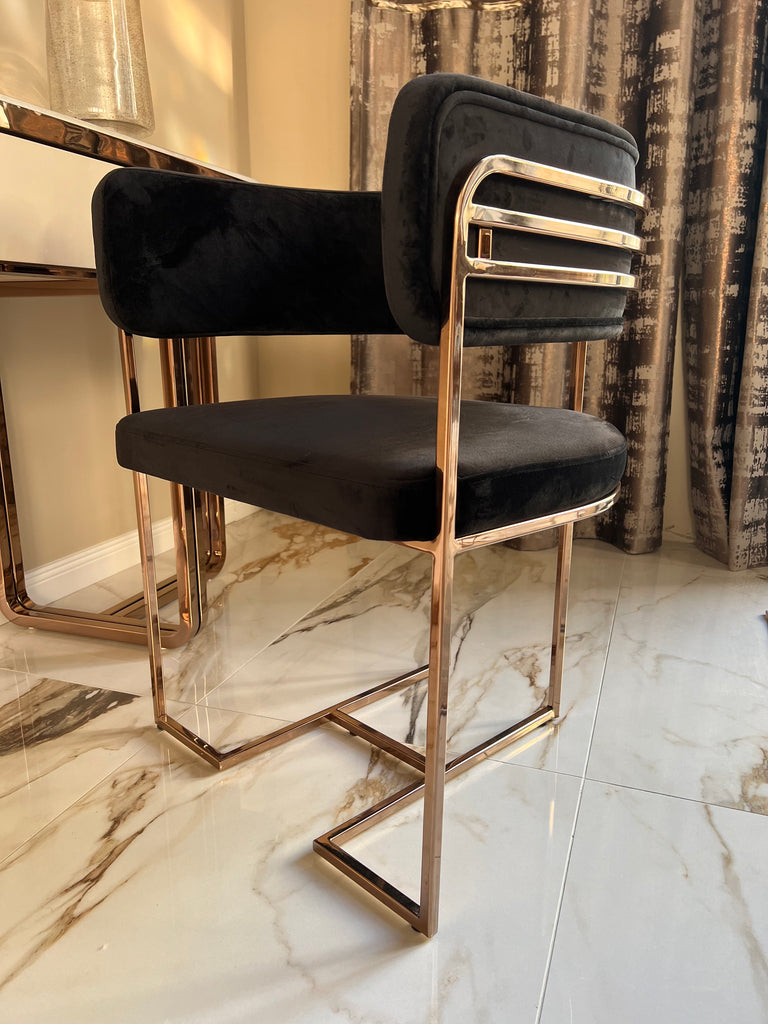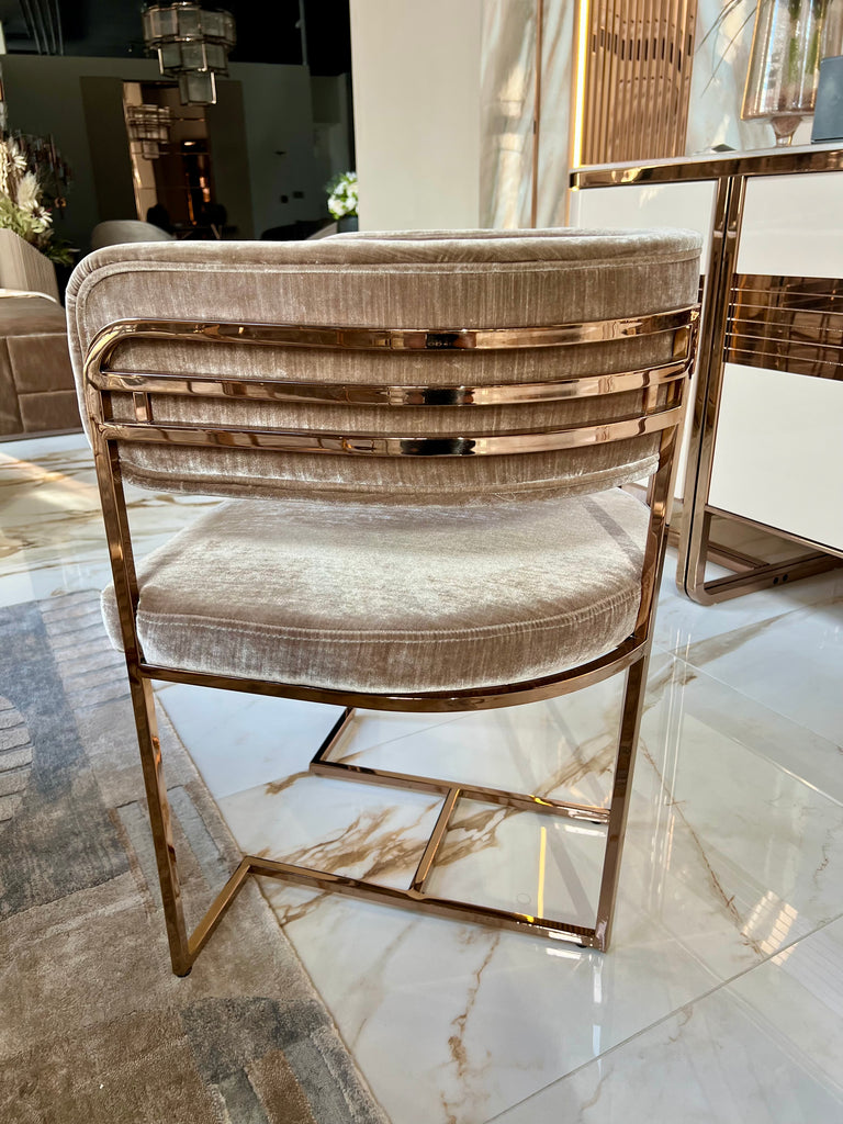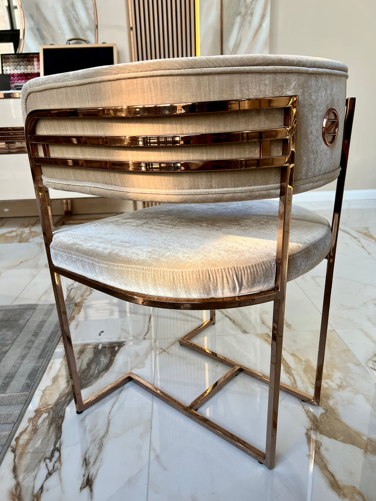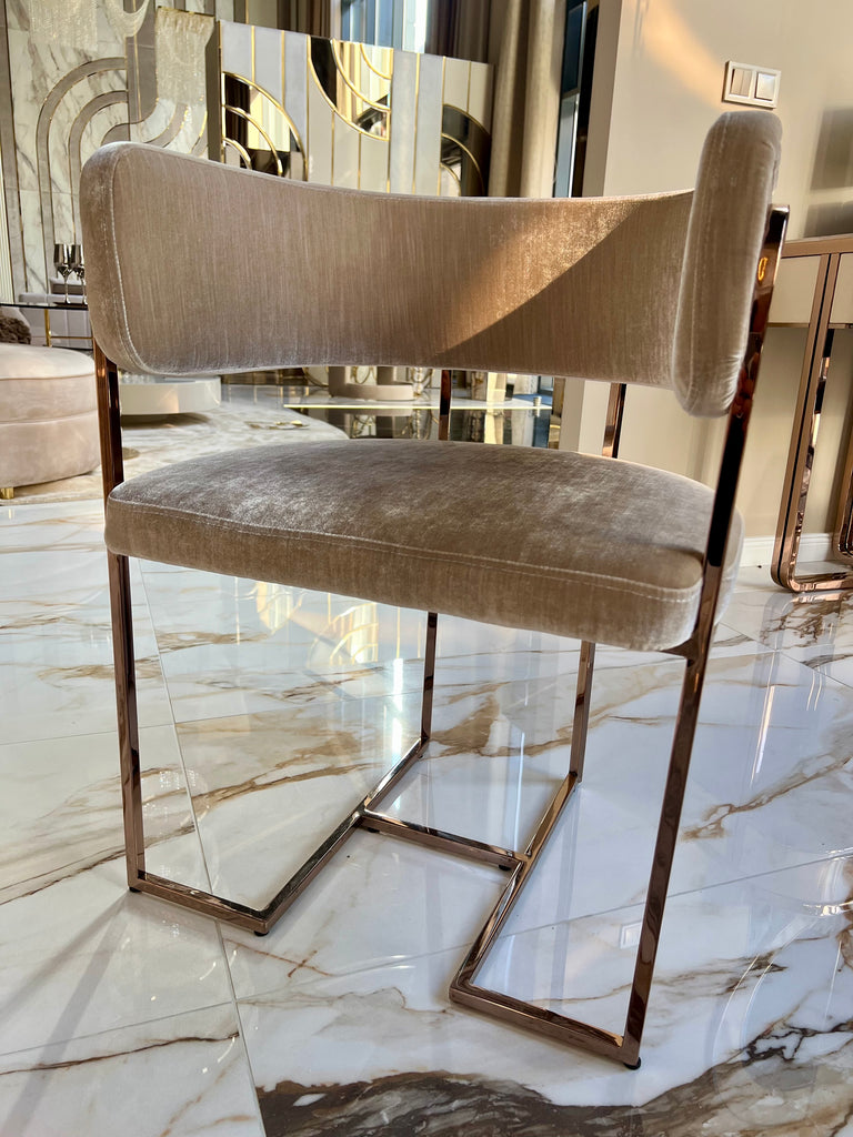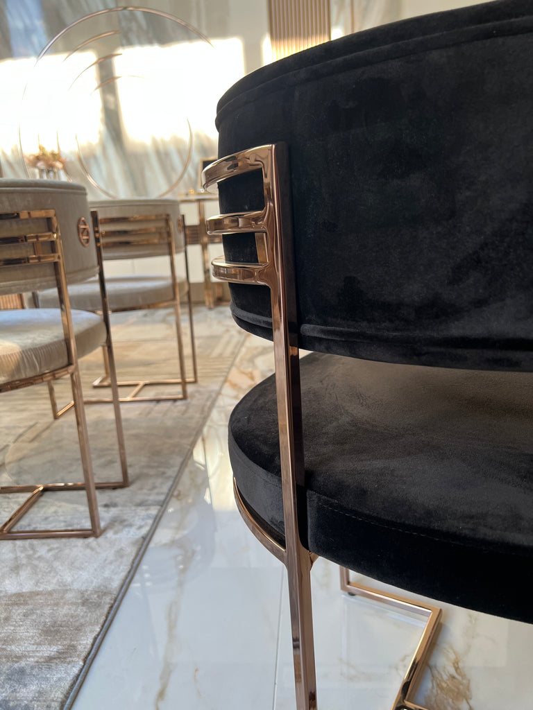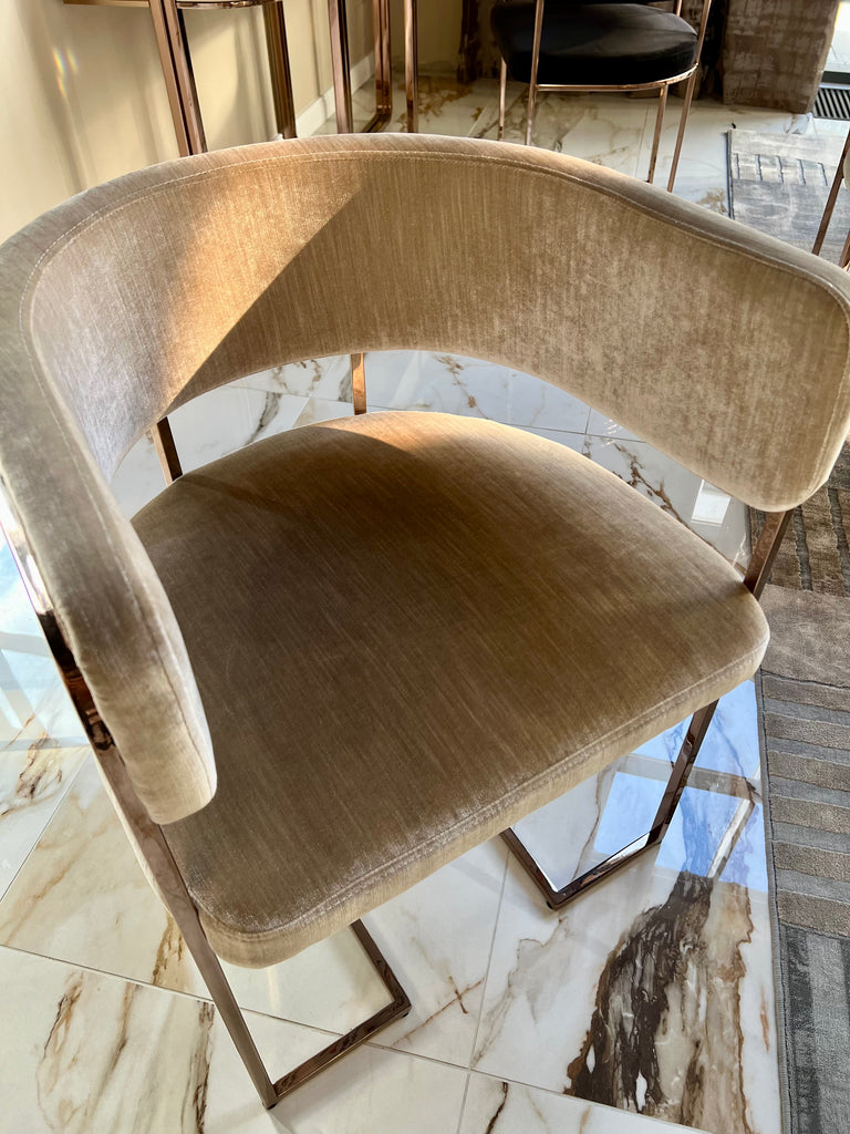 Diego székek készletről elvihetőek fekete bársony-rose gold színben és fényes bézs bársony-rose gold színben. A termékek megtekinthetőek bemutatótermünkben is ahonnan kollekcióváltás miatt most kedvezménnyel elvihetőek.