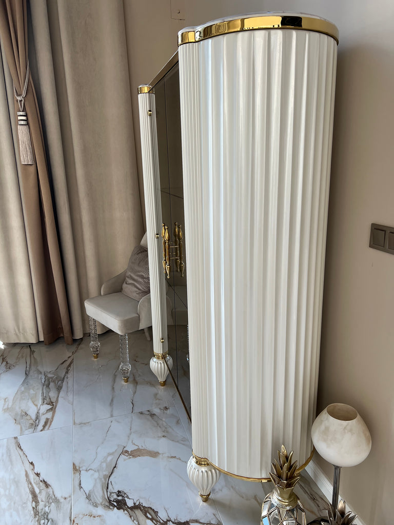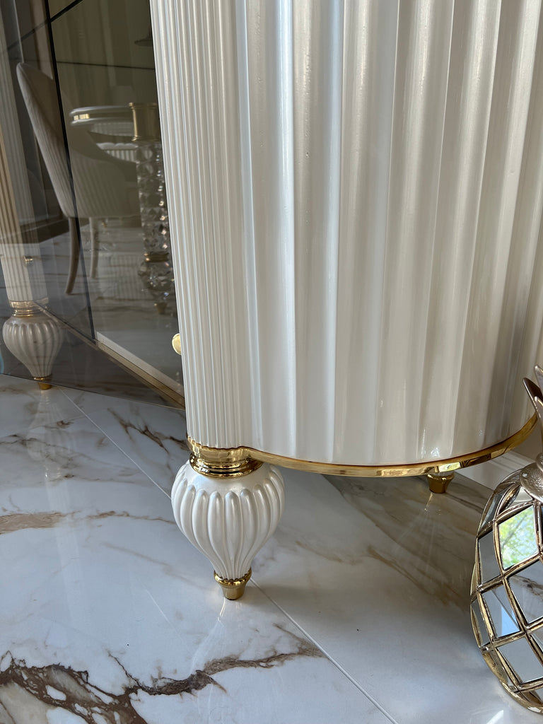 Elsiyum vitrin készletről elvihető fehér-márvány mintás tető-fényes arany színben. A vitrin megtekinthető bemutatótermünkben is. A termék kollekcióváltás miatt nagy kedvezménnyel azonnal elvihető bemutatótermünkből.