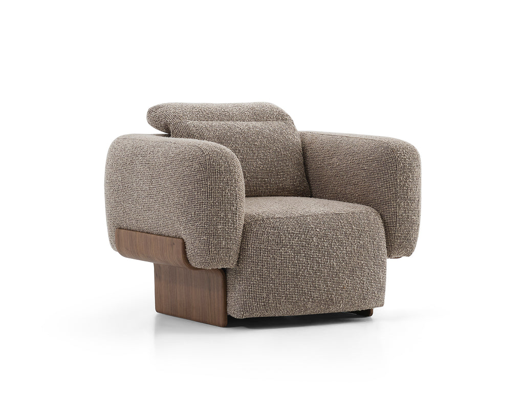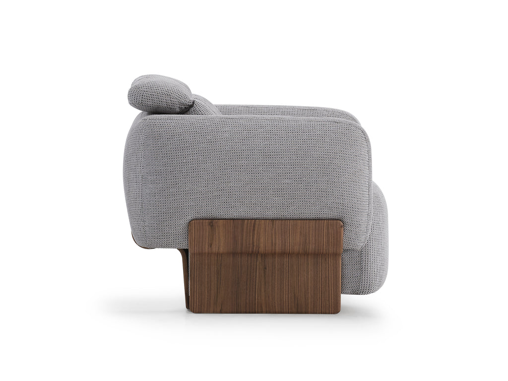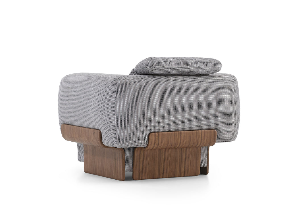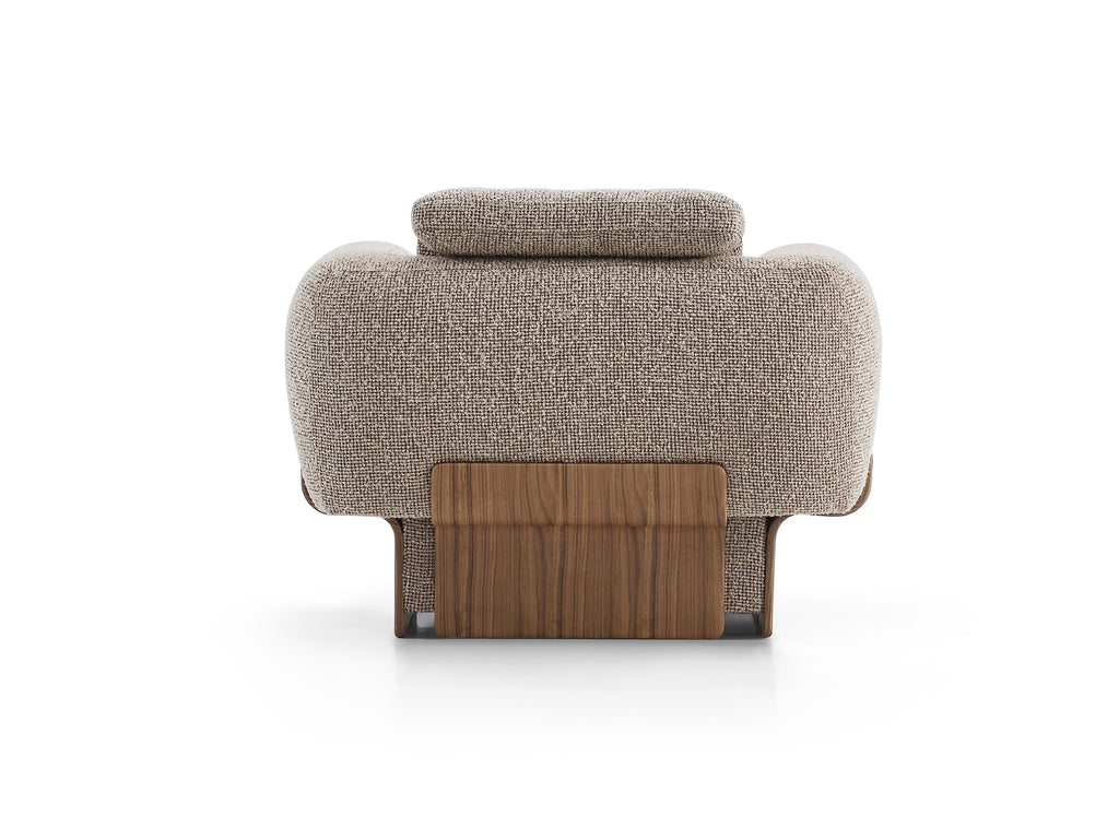 The Rubino armchair embodies the entire character of the collection: unparalleled comfort, friendly form and sophisticated design condensed into a single module. Ideal for independent use or as an accessory to the sofa modules. Thanks to its high backrest and ergonomic seat design, it provides perfect comfort even for long periods of time.