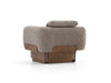 The armchair and pouf are available in different fabric types and colors, with wood or marble decorative elements on request. Make an appointment to visit our showroom and we will help you create the ideal combination!