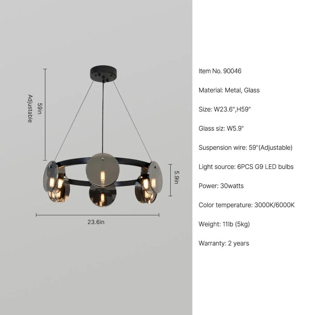 Modern design chandelier – with smoked glass discs