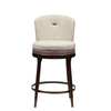 The Max bar stool is a combination of comfort and sophisticated aesthetics. With its rounded shape and double padded seat, it brings real character to any interior - be it a luxurious home, an elegant restaurant or a stylish hotel bar. The textured, premium upholstery and soft-touch materials are harmoniously complemented by the dark walnut leg structure and bronze-colored metal footrest. The handle, discreetly integrated into the backrest, is both practical and aesthetic.